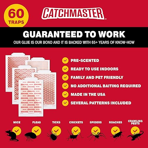 Catchmaster Pro Strength Mouse & Insect Glue Boards 60pk Traps Indoor for Home, Adhesive Bug Catcher, Rat & Rodent Sticky Trap, Non Toxic Bulk Pre-Baited Glue Traps, Pet Safe House Pest Control