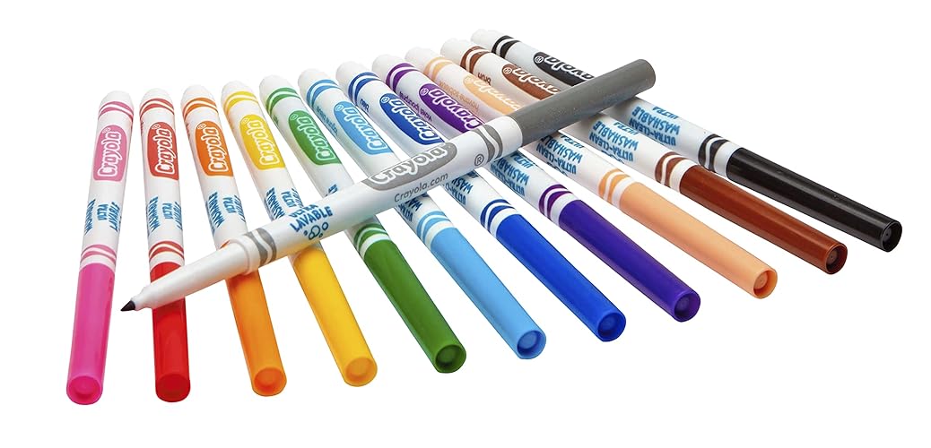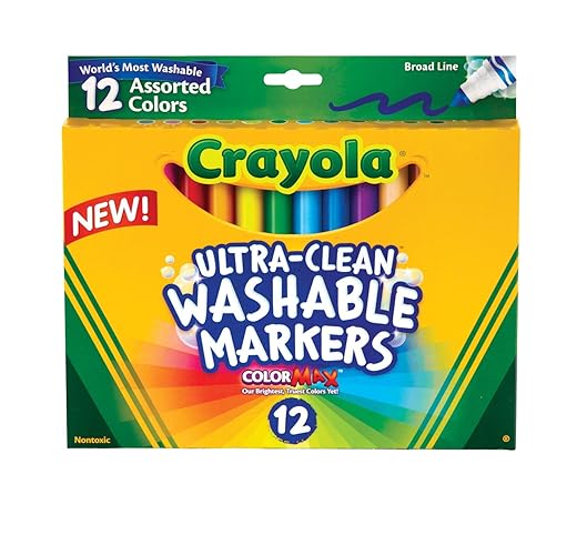 Bring home this set of 10 Ultra Clean Washable Markers in classic colors. Perfect for art projects, crafts, and homework assignments, these fine line markers are essential coloring supplies for school and home. Crayola is dedicated to helping kids of all ages unleash the power of imagination in colorful ways. That's why they developed ColorMax - a variety of innovations to reinvigorate classic Crayola products with the highest quality colors available today. Each of these kids markers washes from skin, most washable clothing, and painted walls, and that's why parents and kids love them. Ideal for ages 3 and up.