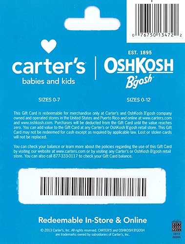 Carter's and OshKosh B'gosh are the two must trusted brands in children's clothing. Our heritage of quality, innovation, and value has earned us the trust of generations of families. Discover clothing essentials, sleepwear, gifts and accessories for children in sizes newborn to 12.