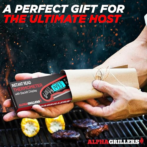 Alpha Grillers Instant Read Meat Thermometer for Cooking Grill and BBQ Griddle - Waterproof w/Backlight & Calibration for Food, Oven, Air Fryer Accessories, Kitchen Essentials, Stocking Stuffer Gifts