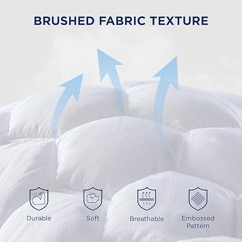 Bedsure Mattress Pads applies three-zone body comfort design to achieve the ultimate restful and personal dreamy sleep experience. This mattress pad adopts innovative quilted polygon and stream pattern to provide efficient airflow to individualize a more comfortable sleep environment. Add an extra layer of comfort and soft fabric to help improve your sleep quality and reduce the unwanted noise & movement from your partner to disturb your sweet dream. Shield a protective cover on your mattress as a barrier to protect you against from stains and dirt with enhanced safety. Convenient usage ensures to preserve, remove and wash easier than the mattress itself.