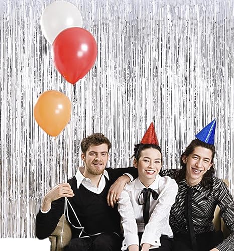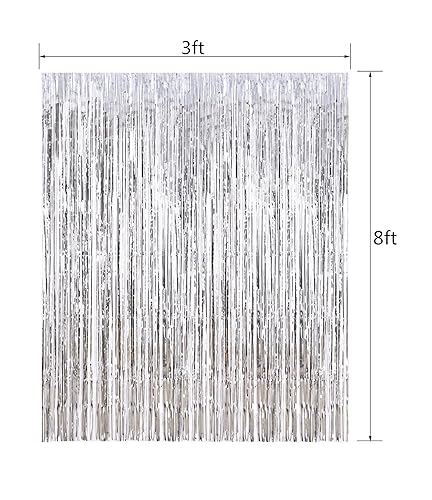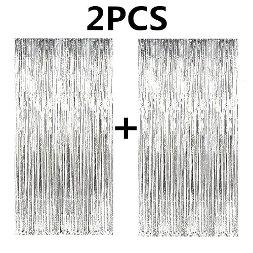 Fecedy 2pcs 3ft x 8.3ft Silver Metallic Tinsel Foil Fringe Curtains Photo Booth Props for Birthday Wedding Engagement Bridal Shower Baby Shower Bachelorette Holiday Celebration Party Decorations