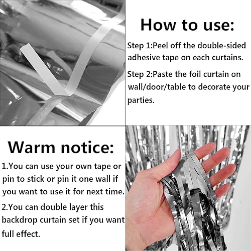 Silver Metallic Tinsel Foil Fringes Curtains.2Packs/SET,enough quantity for your party decoration and Save your money.Each pack Curtains size is 3ft x 8.3ft,enough length for decorate your party. You can use this gorgeous background to decorate your baby shower. This cool Fringes Curtains will make your baby shower more atmospheric. Used as a photo backdrop for a baby shower and paired with an LED light curtain and Balloons and Banners etc... 2packs of the curtains side by side to make the backdrop larger.This party will be very brilliant ! You will very happy as a parent and was remembered for having a great party. This shiny tinsel Foil Fringes curtain is also perfect for your wedding or anniversary. Hang them on a carpeted end or wall as a backdrop,or it could be one entrance to the party. You can DIY put commemorative photos, balloons, banners, LED decorations and various photo props on this backdrop! All the guests who come to bless you will feel your love and beauty! Paste or hang them on a smooth surfaces , It doesn't take a lot of effort to paste them, Just hang them and paste them gently to make it easier to remove them,when the party is over. There is double sided tape already fixed to the back of them. Just peel plastic strip off and hang it up. It sticks Really well, so be aware of what surface you are putting it on. Perfect backdrop for Bachelorette,Gender Reveal Party,Birthday, baby girl or boy's Party, Halloween,Graduation, Anniversary ,Hollywood Party, Homecoming, Christmas or New Year Party etc... High quality product from Brand "FECEDY",any questions pls tell us,We will provide the best service and guarantee.