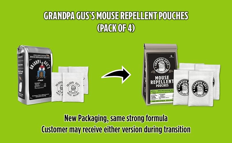 Grandpa Gus's Extra-Strength Mouse Repellent Cinnamon/Peppermint Oils Repel Mice from Nesting & Freshen Air Grandpa Gus's Extra-Strength Mouse Repellent is designed as an alternative for NO SEE NO TOUCH TRAP! It’s non lethal, you’ll never touch dead mice. They’re the cleanest mouse control solution available.
