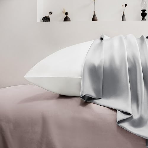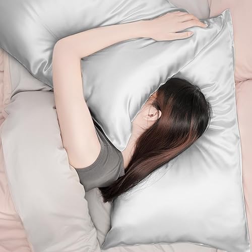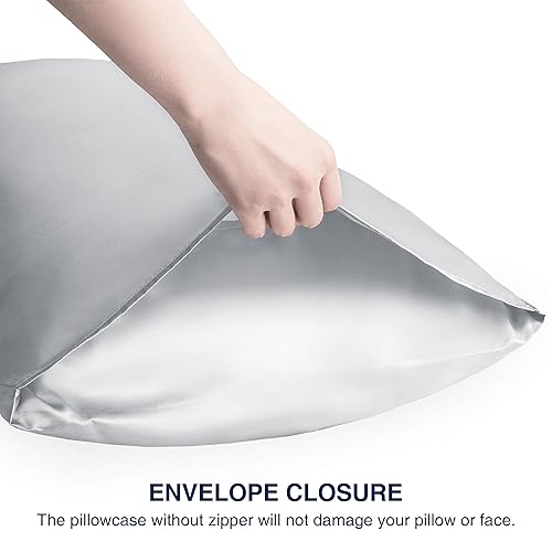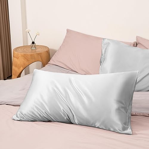 EXQ Home Silky Satin Pillowcase for Hair and Skin,Soft Grey Pillow Cases Queen Size Set of 2 Satin Pillow Case with Envelope Closure Silver Grey(20x30 inches)