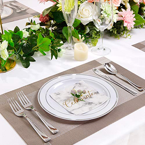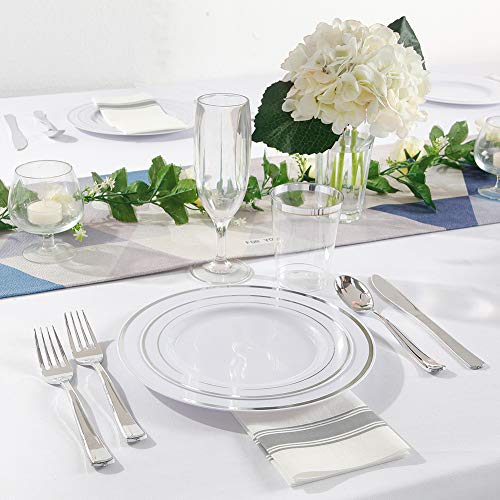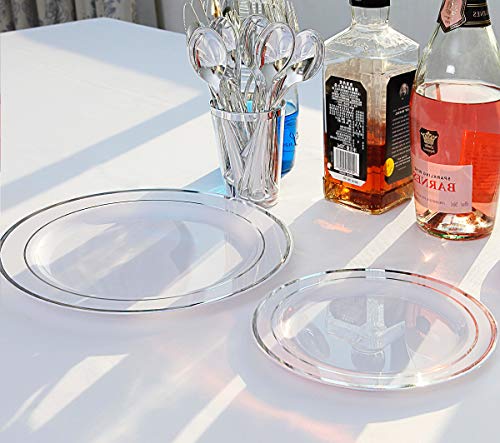 supernal 102pcs Silver Plastic Plates,Silver Rim Plates, Silver Rimmed Plates Include 51 Dinner Plates,51 Dessert Plates,Disposable Plates for Wedding,Party,Birthday