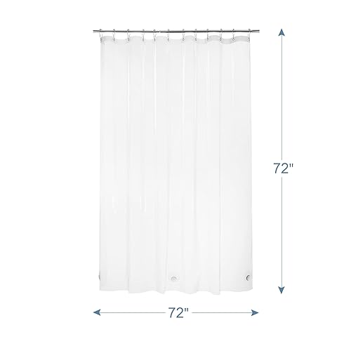 AmazerBath Heavy Duty Shower Curtain Liner 12 Gauge, 72 x 72 Inches Clear Shower Curtain Liner with 3 Clear Stones and 12 Grommet Holes, Weighted Plastic Shower Liner