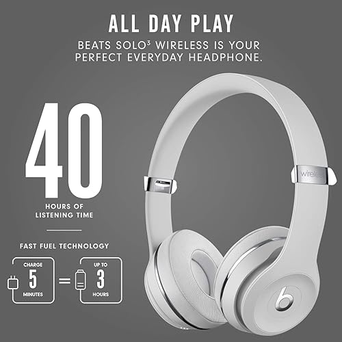 Beats Solo3 Wireless On-Ear Headphones - Apple W1 Headphone Chip, Class 1 Bluetooth, 40 Hours of Listening Time, Built-in Microphone - Satin Silver (Latest Model)