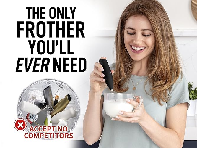 Zulay Kitchen Milk Frother Wand Drink Mixer - Durable Handheld Milk Frother Electric Whisk - Easy-Clean Milk Frother Wand & Mini Blender - Electric Coffee Frother - Black