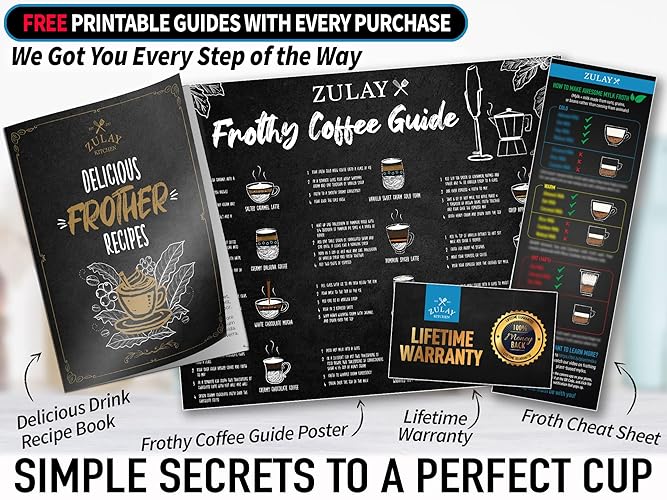 Experience the new Milk Boss Frother with Motor. Better, Faster, Stronger! You can now make amazing foamy, frothy beverages in the comfort of your home! Enjoy a cappuccino, macchiato or latte at home, every day.Save Money with the Milk Boss electric battery operated milk frother. Have fun with this powerful handheld battery powered milk frother. Stand not inlcuded Simple, Practical and Easy to Use! Insert whisk in milk, press the button and froth for 15-30 seconds. Ergonomic design, made to fit comfortably in your hand. Includes easy, press & hold on/off button. Uses 2 AA batteries (not included with the mini mixer. Many Uses Milk frother whisk is strong enough for frothing milk for coffee, lattes, cappuccinos, hot chocolate, cocktails, milk shakes, protein shakes, almond milk, chia latte, matcha teas, breaking up clumps in sauces, etc. Use this electric milk frother, matcha whisk all the time without having to worry about it breaking on you. For Best Results froth in the Zulay Frothing Pitcher and froth the milk by itself before adding to coffee. Easy to Clean Simply emerge the whisk in a cup of warm water, hit the button, and it’s clean in seconds! Lifetime Money Back Guarantee We believe in our product so much that if for any reason you are not fully satisfied, just return your Milk Frother and we will give you a full refund, no questions asked. Your frother is guaranteed to last for years, if not you can message us directly and we will make it right! espumador de leche electrico espumador de cafe heater heated steamer cream froth frothed steam steamed cafe wisk portable hand held frothy whipper stick operated cordless beater metal heating foaming automatic warmer warm cold set manual powder stirrer electric kit flother milk frother magia zulay magia beer frother beer