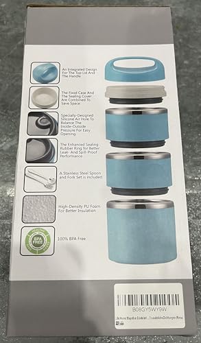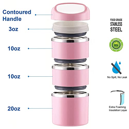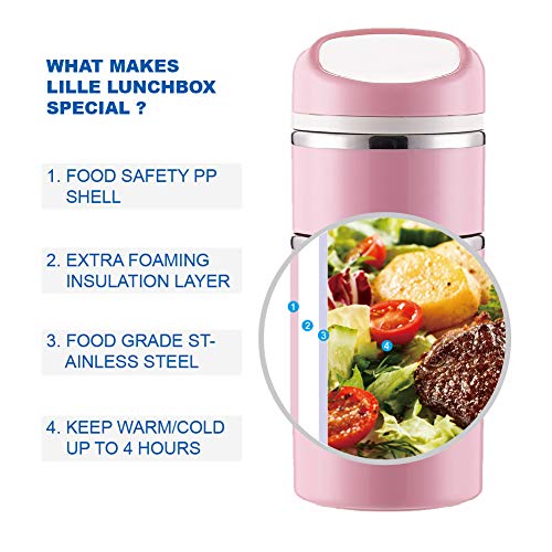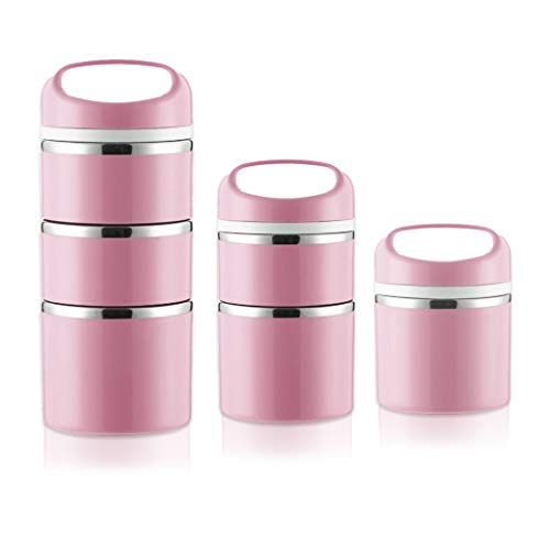 Lille Home Stackable Stainless Steel Thermal Lunch/Snack Box, 3-Tier Insulated Bento Box with Portable Cutlery Set, 43OZ, Pink