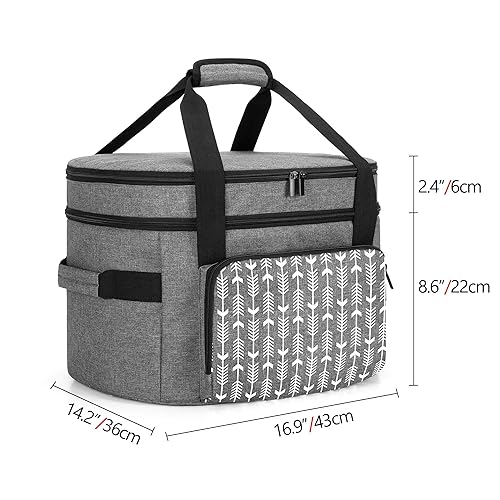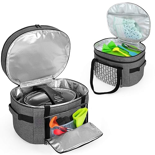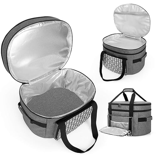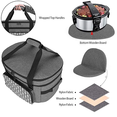 Yarwo Slow Cooker Travel Bag with Bottom Board Compatible with Crock-Pot and Hamilton Beach 6-8 Quart Oval Slow Cooker, Double Layers Slow Cooker Carrier, Gray with Arrow (Bag Only, Patent Pending)