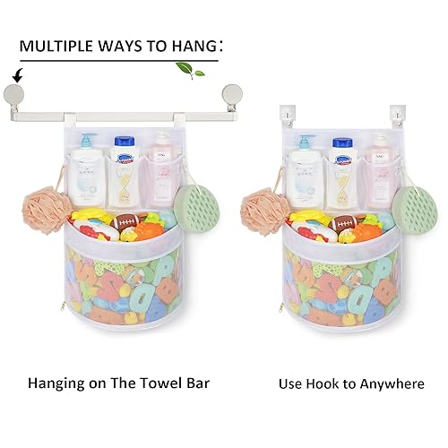 Baby Bath Toy Organizer, quick drying, and mould proof, Multiple-Suspension Bath Toy Holder, Large Capacity Multi Use Bathtub Toy Storage Bag(1 Large, White)