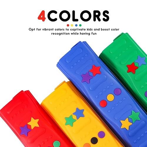 MOCUTEEN Kids Balance Beam Toddler Stepping Stones Max Load 220LBS Non-Slip Textured Surface & Rubber Pads Bottom Promote Agility Coordination Five Star Pattern