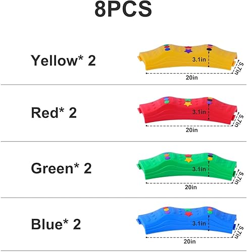 Plastic Colorful Five Star Pattern Kids Toddlers Balance Beam Stepping Stones The balance beam for kids is made of high quality plastic, it is not only non-toxic, but also thick, sturdy and stable, its weight capacity can be as high as 220lb, both children and adults can enjoy playing together, this toddler balance beam has passed CPC test, its surface is very smooth, no sharp corners and edges, safe for kids to play