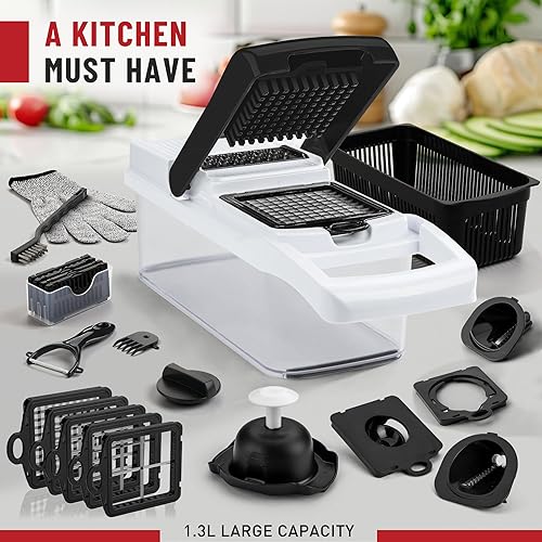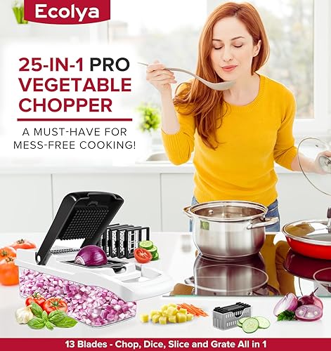 Vegetable Chopper 25 in 1 Multifunction Onion Chopper Dicer, Spiralizer for Veggie Cutter, Mandoline Slicer, Food Chopper with Container, 13 Blades