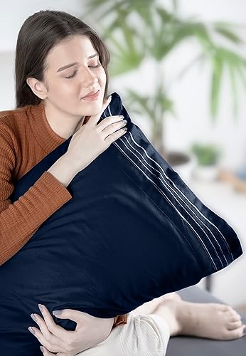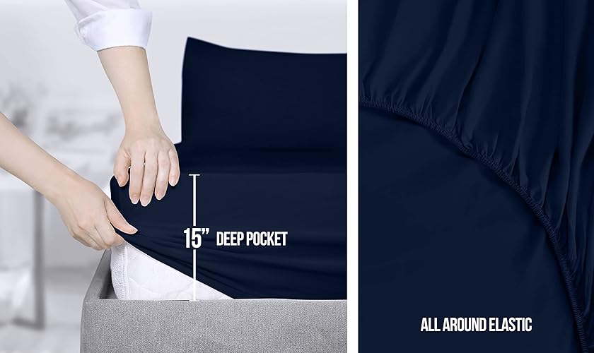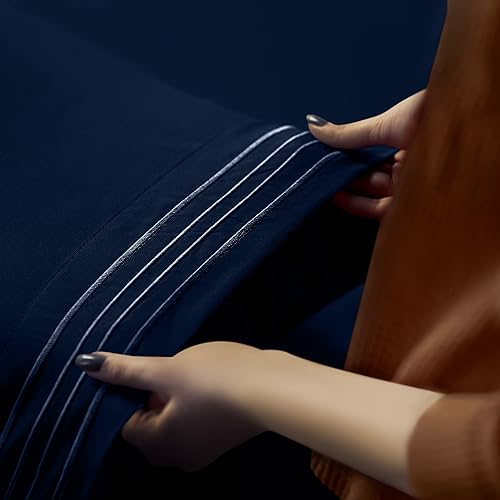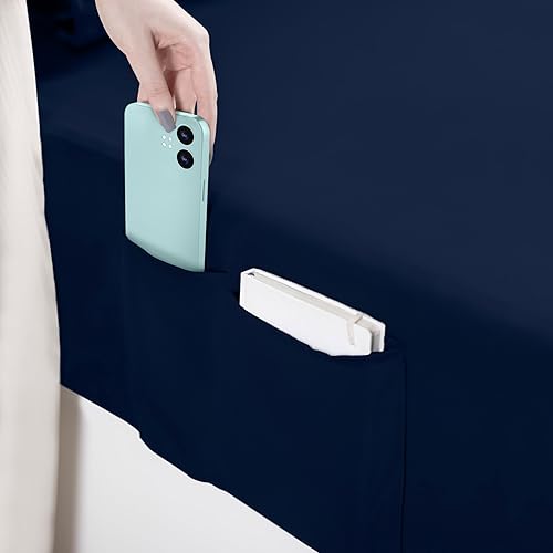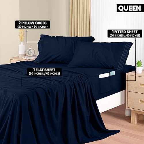 Utopia Bedding Queen Size Sheet Set, Soft Microfiber 4 Piece Hotel Luxury Bed Sheets with Deep Pockets - Embroidered Pillow Cases - Side Storage Pocket Fitted Sheet - Flat Sheet (Navy)