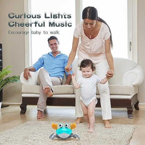 Yeaye Crawling Crab Baby Toys Infant - Tummy Time Toy Gifts for 3 4 5 6 7 8 9 10 11 12 Boy Girl with Learning Crawl System Music for 0-6 6-12 12-18 36 Months Walking Toddler Birthday Gift(Green)