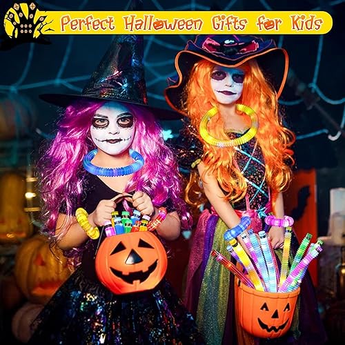 Gigilli 24 Pack Halloween Glow Sticks Party Favors for Kids 4-8-12, Light up Sensory Treats Pop Tubes Toys, Bulk Glow Necklaces Bracelets Birthday Goodie Bags Stuffers, Glow in the Dark Party Supplies