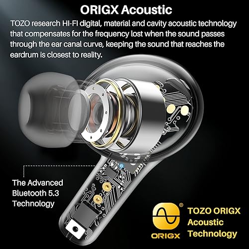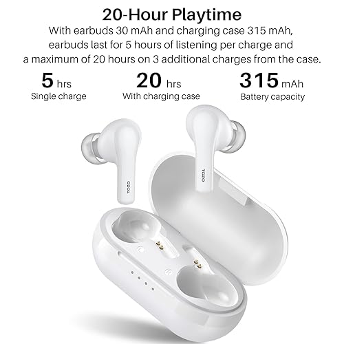 TOZO A2 Mini Wireless Earbuds Bluetooth 5.3 in Ear Light-Weight Headphones Built-in Microphone, IPX5 Waterproof, Immersive Premium Sound Long Distance Connection Headset with Charging Case, White