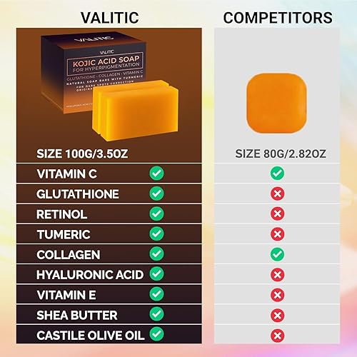 Bring back the glow in you! One of the most talked about benefits of turmeric is its ability to illuminate skin. It may correct dark spot. Skincare products made of plantbased ingredients create miraculous effects when applied in the long term. Our soap is made of Glutathione, Collagen, Vitamin C, Hyaluronic Acid, Shea Butter, and Castile Olive Oil which not correct dark spot but also help reduce acne marks without irritating. Valitic Soap is a gentle daily cleanser. It removes dirt, oil, and makeup without stripping away your natural protective oils. It produces creamy lather to deeply cleanse not only the outer layer of the skin but deep into damaged areas such as elbows and knees. Adding our Valitic soap to your skincare regimen can also leave your skin revitalized. For external use only. Avoid contact with eyes. Do a patch test. Try it on areas like the inner arm or side of the neck. Discontinue using if irritation occurs.