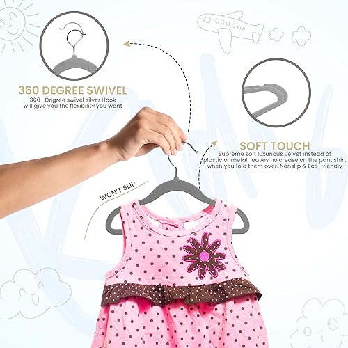 Utopia Home Kids Hangers Velvet (50 Pack) - 11 Inch Durable Baby Hangers for Closet - Perfect Toddler Hangers Non Slip for Everyday Use (Grey)