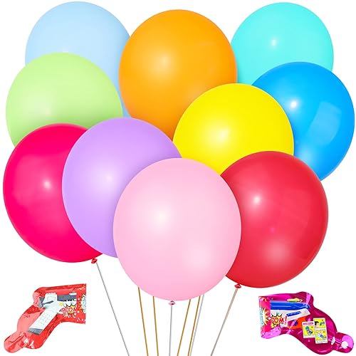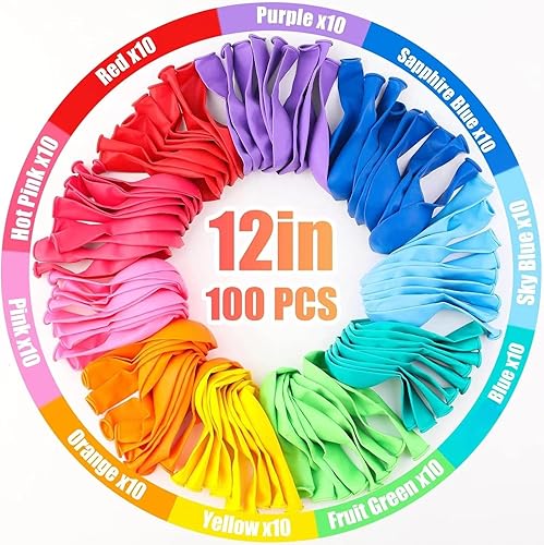 Colorful Balloons 100 PCS, Assorted Color 12 Inches Rainbow Latex Balloons with Bonus Confetti, 10 Bright Colors Party Balloons for Birthday, Wedding, Baby Shower, Decoration (Round-100)