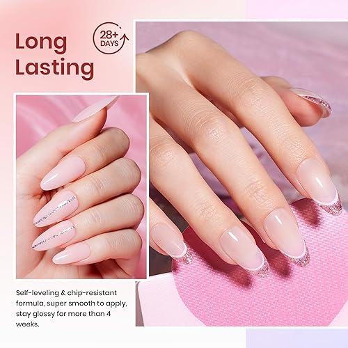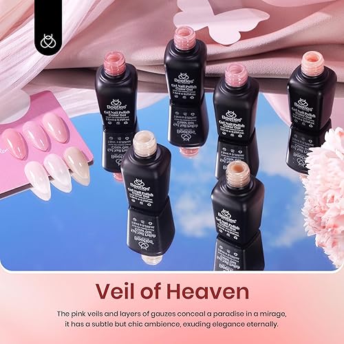 Beetles Gel Nail Polish Set, 6 Colors Jelly Gel Polish Nude Pink Gel Neutral Nail Art Design Translucent Gel Nail Kits Soak Off Uv Nail Lamp Cured Nail Manicure DIY Home for Women