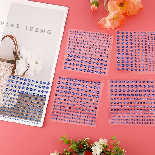 5 Sheets Face Gems Jewels Rhinestone Stickers, 4 Size Self Adhesive Gems Stickers DIY Bling Jewel Crystal Craft Stickers for Nails Hair Face Eyes Body (Blue)