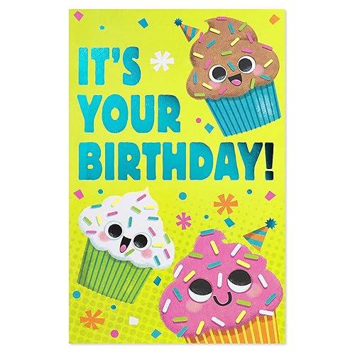 Celebrate that special kid in your life with this super sweet birthday wish! The design features a group of happy little cupcakes (sprinkles included) having a good time! Bright, colorful, and extra cute, the card includes shimmering metallic blue foil and playful pop-up features, along with a cheerful wish for their big day. A great way to wish them a birthday as sweet as they are!