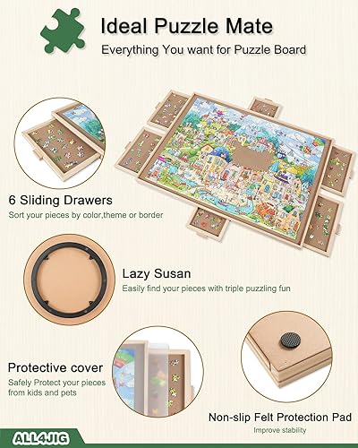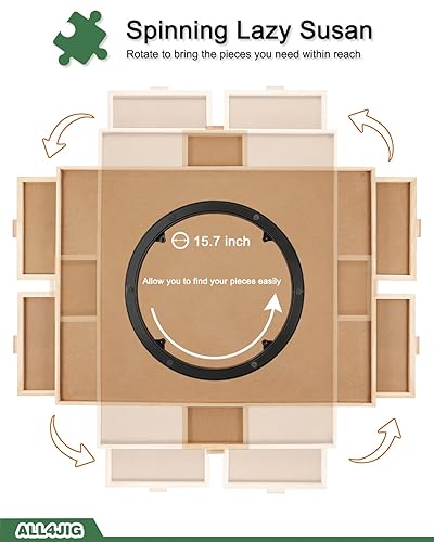 ALL4JIG 1500 Pieces Rotating Puzzle Board with 6 Drawers and Cover,26"x35"Portable Wooden Jigsaw Puzzle Table for Adults,Lazy Susan Spinning Puzzle Boards Birthday Gift for mom