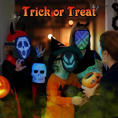 ORWINE Halloween LED Mask, Light Up Mask with Gesture Sensing, Halloween Mask LED Lighted Face Transforming Mask for Festival Dj Cosplay Halloween Costume Masquerade Parties