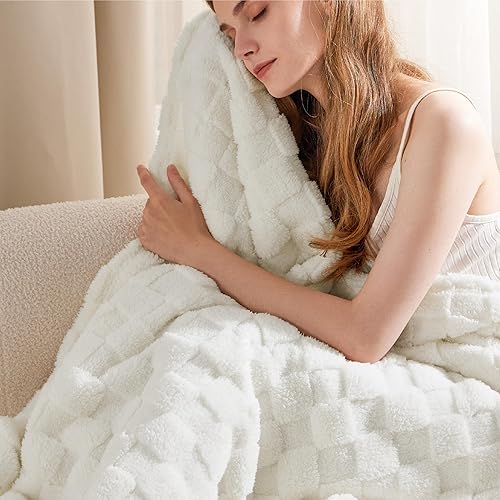 Bedsure White Throw Blanket for Couch - Super Soft Cozy Blankets for Bed, Cute Small Fleece Blanket for Girls and Women, 50x60 Inches