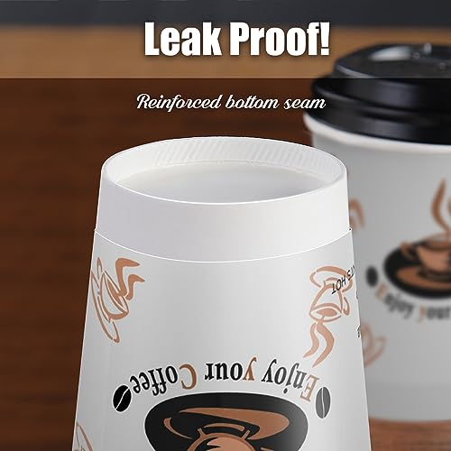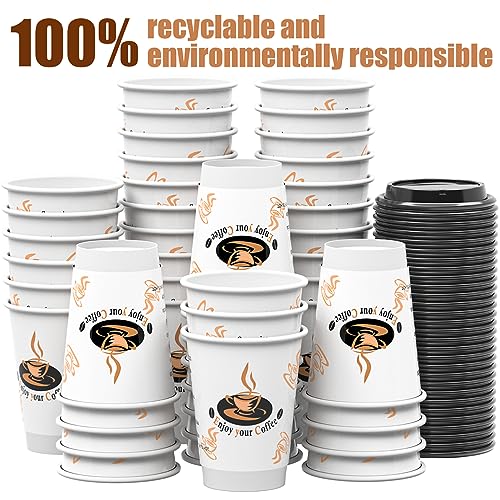 100 pack 12 oz Double Wall Disposable Paper Coffee Cups with Lids These convenient eco coffee cups are made with up to 100% renewable resources, 100% recyclable, saving you time while helping the environment. Package Included: -100 paper cups -100 lids Rolled-Rim Design, Spill-Proof Our coffee cups featuring a tightly rolled rim matched with a fitted lid provide a tight and secure seal. Ideal for on-the-go drink options. Double wall designed paper cups You can use our paper cups for hot or iced coffee. Double wall design have a good insulation and protect your hands. No matter what the temperature of the drink, our paper cups can meet your needs. Suitable for various occasions Our disposable coffee cups with lids are suitable for many occasions. For example wedding, party, Christmas, coffee house, birthday party. Choosing us is equivalent to choosing convenience.