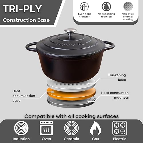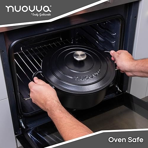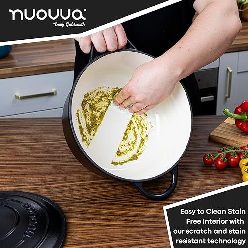 Cast Iron Dutch Oven with Lid – Non-Stick Ovenproof Enamelled Casserole Pot, Oven Safe up to 500° F – Sturdy Dutch Oven Cookware – Black, 6.4-Quart, 28cm – by Nuovva