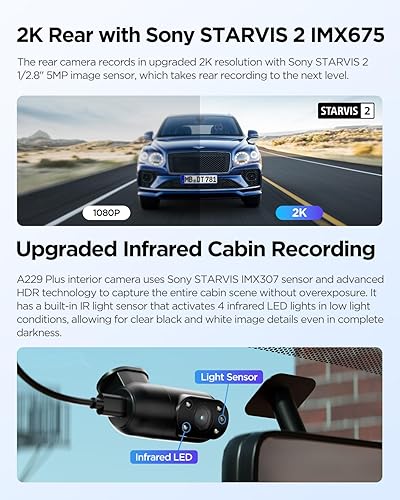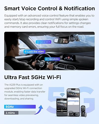 VIOFO A229 Plus 3 Channel Dash Cam, Dual STARVIS 2 Sensors, 3-Channel HDR, 1440P+1440P+1080P Front Inside and Rear Car Camera, 5GHz Wi-Fi, Voice Control, Ultra-Precise GPS, 24 Hours Parking Mode