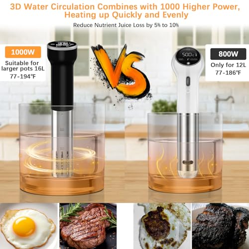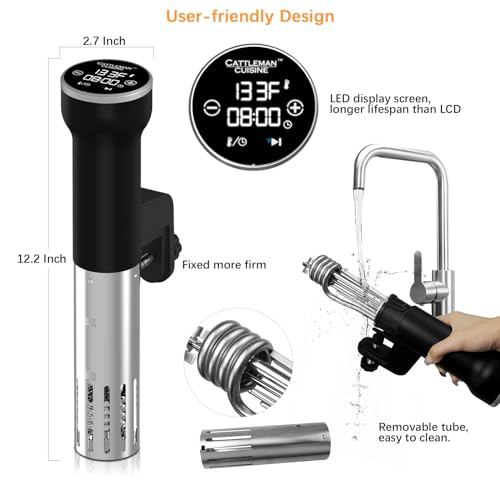 Sous Vide Machines Wi-Fi, Immersion Circulator Precise Cooker, Suvee Cooker with Accurate Temperature&Timer Touch Control, 1000W, Portable, Noise-free, Fast Heating, IPX7 Waterproof, Cattleman Cuisine