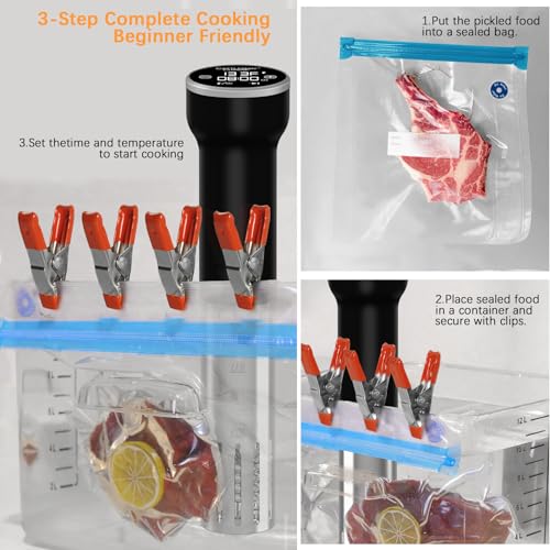 The Cattleman Cuisine sou vide machine is designed with WiFi connectivity so you can monitor the cooking process from your smartphone anytime and anywhere. In addition, the sous vide consists of a precise timer, adjustable clamp and LED display so that it can easy to achieve professional-level cooking results at home. Cattleman Cuisine Mini Sous Vide Machine with Wifi Supply Voltage: 120V~, 60Hz Total Power: 1000W Product Size L×W×H (inch): 4.53*2.76*12.24 Suitable Container:Larger Capacity Containers 4-16L Smart Timer: 0-99 hours Temperature Range: 77-194°F (25-90°C) Usage method STEP 1: Place the sous vide machines into a 4-16L container filled with water. STEP 2: Set cooking temperature and time. STEP 3: Put the ingredients into a vacuum sealed bag and put them in. STEP 4: Slow cooked foods can also be further fried, grilled or baked to enhance their flavour.