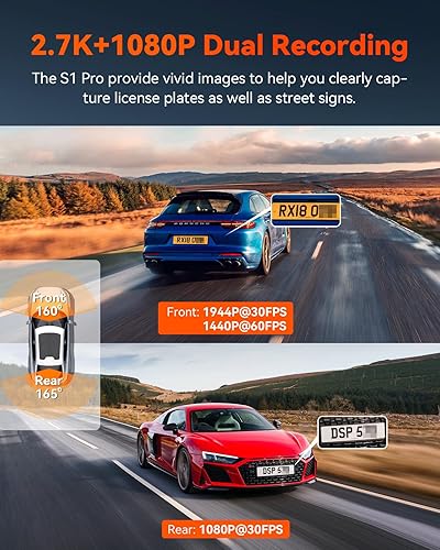 Vantrue S1 Pro 2.7K Front and Rear 5G WiFi Dual Dash Cam, STARVIS 2 HDR Night Vision, Optional Remote Preview, 1440P 60FPS Hidden Dash Camera, GPS, Voice Control, 24/7 Parking Mode, Support 512GB Max