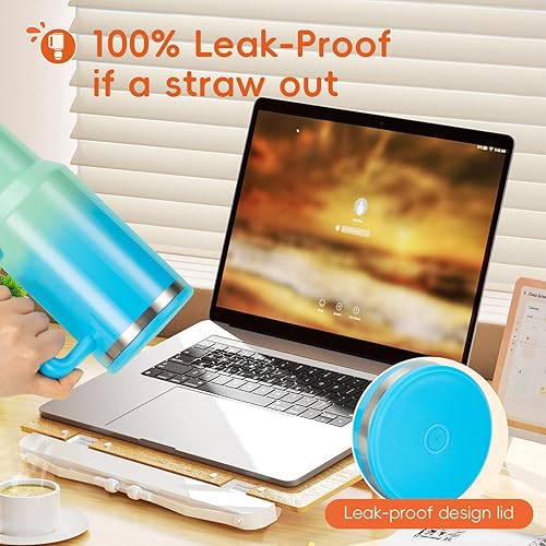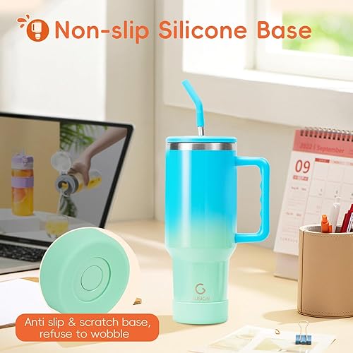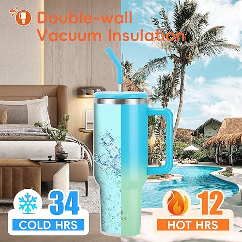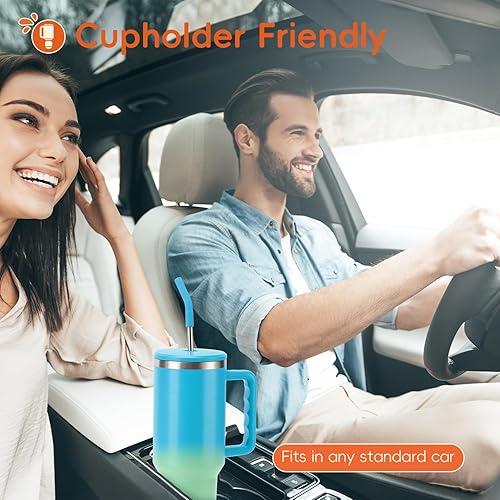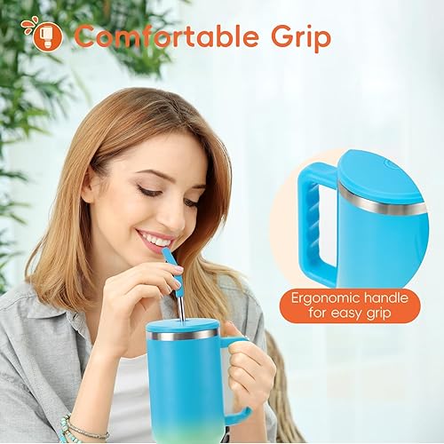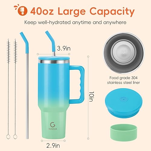 VUSIGN 40 oz Tumbler with Handle and Straw Lid, Stainless Steel Vacuum Insulated Tumbler Travel Mug Water Bottle Cup for Water Iced Tea Coffee Smoothie Car, Blue-Green Mixed
