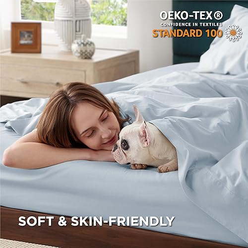The Bedsure Cotton Percale Weave Sheet Set provides year-round comfort with its high breathability and excellent moisture-wicking ability. It also enhances the interior style of your sleeping space with its casual elegance.