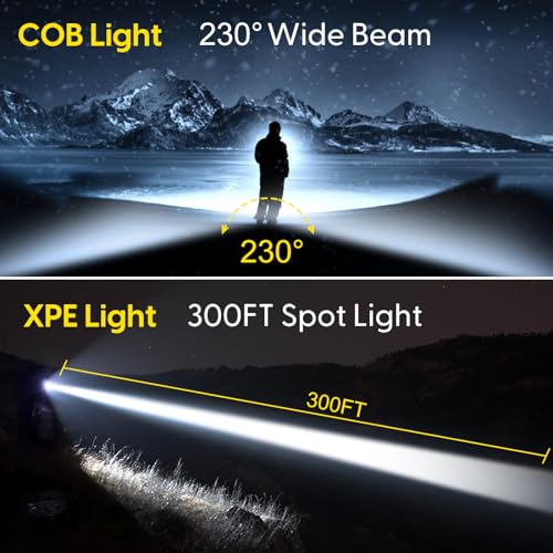 Lsnisni Headlamp Rechargeable, 230°Wide Beam Head Lamp LED, Head Flashlight with Motion Sensor, 5 Mode Head Lights for Forehead, Waterproof Headlamps for Adults Hiking Camping Gear