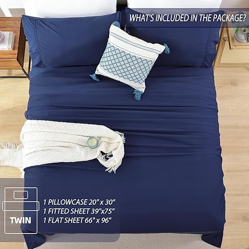 Twin Sheet Set - 3 Piece Soft Breathable Bed Sheets for Twin Size Bed, Extra Deep Pocket Luxury Brushed Sheets, Cooling Hotel Bedding Sheets and Pillowcases, Wrinkle Free Oeko-Tex Sheets