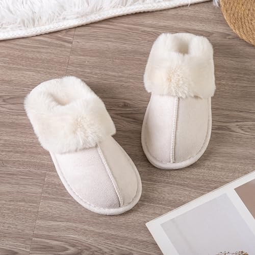 Enteer Womens Slipper Memory Foam Fluffy Soft Warm Slip On Anti-Skid House Slippers,Cozy Plush for Indoor Outdoor