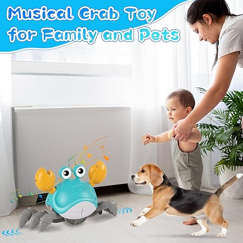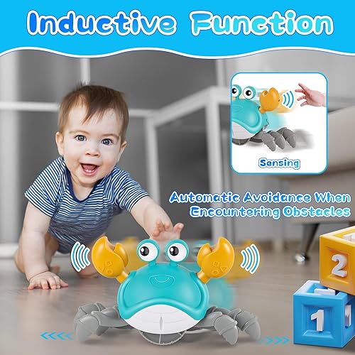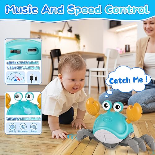 Crawling Crab Baby Toys 3.0, Tummy Time Toys with Music&Speed Control for Babies, Infants Walking Crab Montessori Musical Toys 3 4 5 6 7 8 9 10+ Toddler Boys Girls Birthday Gifts