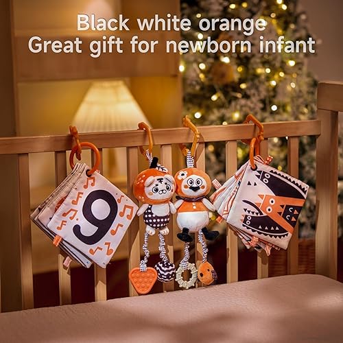TUMAMA Kids Black and White Baby Toys, Stroller Activity Toy,High Contrast Rattle Toy & Soft Book Set,Tummy Time Plush Hanging Toys,Early Educational Toys for Infant Babies 0 3 6 9 12 Month