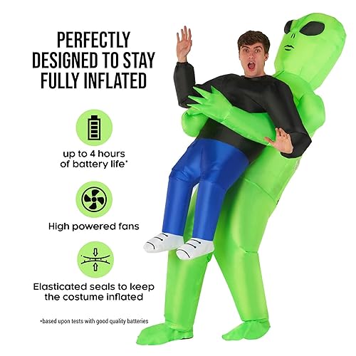 Elevate Your Costume Game To Cosmic Levels With Our Hilarious Alien Abduction Inflatable Costume, Complete With A Fan And Battery Pack For All-Day Amusement. Just Remember To Supply The 4 X Aa Batteries (Not Included) And Prepare For Interstellar Fun! Embrace The Versatility With Our Universally Accommodating Size, Tailored To Fit Most Adults. Ensure The Best Fit By Consulting Our Detailed Size Chart, Conveniently Located In The Product Images. This One-Size-Fits-Most Adult Inflatable Alien Costume Design Ensures A Comfortable Experience For All. For Optimal Fit, Please Consult The Size Chart Available In Our Product Images. Born From A Passion For Imaginative Attire In 2009, Our Brand Celebrates An Extensive Variety Of Costumes, All Created With An Unwavering Commitment To Quality In Fit And Design, Supported By Our International Presence Across The Us, Uk, And Europe. Perfect For Alien Abduction Halloween Costume, Alien Carrying Human Costume For Adults, Alien Carrying Person Costume, Alien Holding Human Costume, Alien Blowup Costume, Alien Holding Person Costume, Funny Alien Costume, Youth Inflatable Alien Costume, Alien Carrying Costume, Youth Alien Inflatable Costume, Alien Blow Up Costume Youth, Alien Costume Adult Male, Alien Kidnapping Costume, Inflatable Space Costume, Inflatable Space Costume, Kidnapping Alien Costume, Men's Alien Costume
