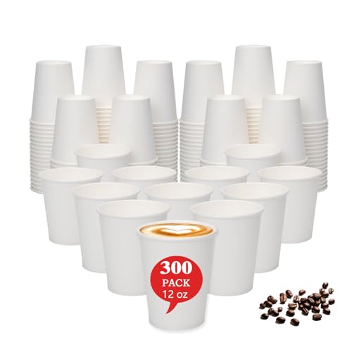 MOUMOULIFE 12OZ Hot Coffee Paper Cups (300 Count), White Disposable Paper Cups, Versatile for Coffee, Hot Liquids & Juice, Perfect for Cafes, Bistros & Businesses…