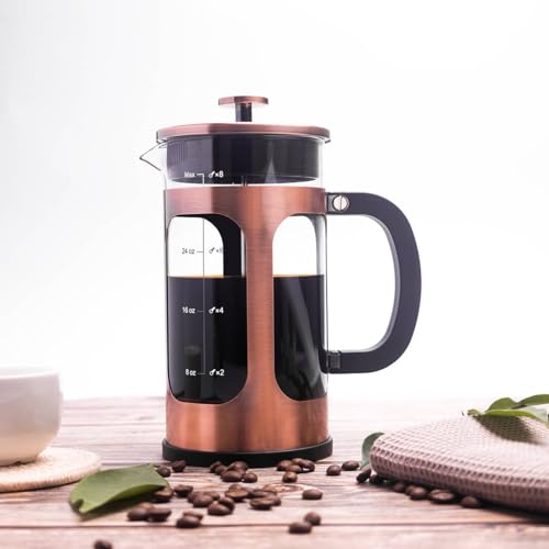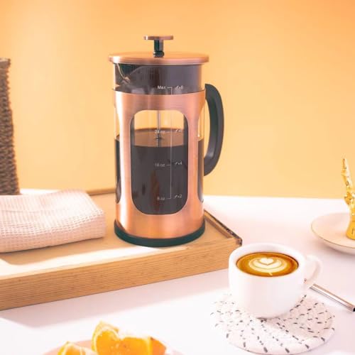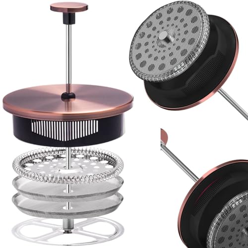 ADAMITA French Press Coffee Maker 8 cups 34 oz 304 Stainless Steel Coffee Press with 4 Filter Screens, Easy Clean Heat Resistant Borosilicate Glass - Free 100% BPA… (Copper-NRA1-S, 34oz)