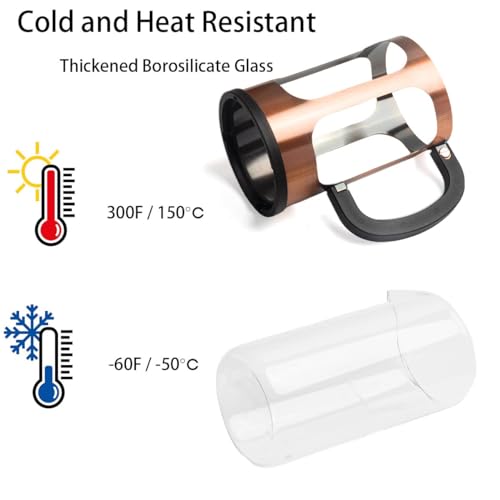 Note: In the process of logistics transportation, the package will have about 1% breakage rate, So when you receive a damaged package, please take a photo and feel free contact us by email: adamservice1@outlook.com, We will send you a new French Press and you do not need to return the broken item. Perfect gift idea for anyone Suitable for any occasion Make perfect gifts ideas for your best friends, mom, mother daughter,Mimi, auntie, sister, wife, girlfriends, coworkers, neighbors, teachers, nurses, employees or any fabulous woman in your life suitable for birthdays, holidays, Christmas, Thanksgiving, New Year, and Valentine's day and coffee and tea lovers. Powerful 4-level Filtration We use double stainless steel screen filters, Double screen filter that prevent sediments to pass, traps the smallest coffee grounds to produce an exceptional full-bodied flavor. DURABLE AND BPA FREE #304 food grade rated stainless steel,34 Ounce 8-cup (1000ml), heat-resistant borosilicate glass pot and heat-resistant handle. Easy to Clean It comes with very clear instructions inside the box for cleaning and use. It is easy to use and easy to clean,the press itself comes completely apart to help with cleaning as well. Package included 1 French Press Coffee Maker Note: In the process of logistics transportation, the package will have about 1% breakage rate, So when you receive a damaged package, please take a photo and feel free contact us by email: adamservice1@outlook.com, We will send you a new French Press and you do not need to return the broken item. Perfect gift idea for anyone Suitable for any occasion Make perfect gifts ideas for your best friends, mom, mother daughter,Mimi, auntie, sister, wife, girlfriends, coworkers, neighbors, teachers, nurses, employees or any fabulous woman in your life suitable for birthdays, holidays, Christmas, Thanksgiving, New Year, and Valentine's day and coffee and tea lovers. Powerful 4-level Filtration We use double stainless steel screen filters, Double screen filter that prevent sediments to pass, traps the smallest coffee grounds to produce an exceptional full-bodied flavor. DURABLE AND BPA FREE #304 food grade rated stainless steel,34 Ounce 8-cup (1000ml), heat-resistant borosilicate glass pot and heat-resistant handle. Easy to Clean It comes with very clear instructions inside the box for cleaning and use. It is easy to use and easy to clean,the press itself comes completely apart to help with cleaning as well. Package included 1 French Press Coffee Maker BONUS free 1 Copper Stainless Steel Coffee/Tea spoon BONUS free 1 Copper Stainless Steel Coffee/Tea spoon BONUS free 1 Copper Stainless Steel Measuring spoon BONUS 1 Milk Frother BONUS 1 Sponge Cleaning Brush BONUS 2 extra 2 pcs Stainless Steel Screen filters included 1 Instruction Manual Safety Reminder 1. Keep away from children when hot to avoid burns! 2. Using excessive force can cause scalding liquid to shoot out of the pot. BONUS 1 Cotton Cleaning Towels BONUS 1 Woven Coaster BONUS 2 extra 2 pcs Stainless Steel Screen filters included 1 Instruction Manual Safety Reminder 1. Keep away from children when hot to avoid burns! 2. Using excessive force can cause scalding liquid to shoot out of the pot.